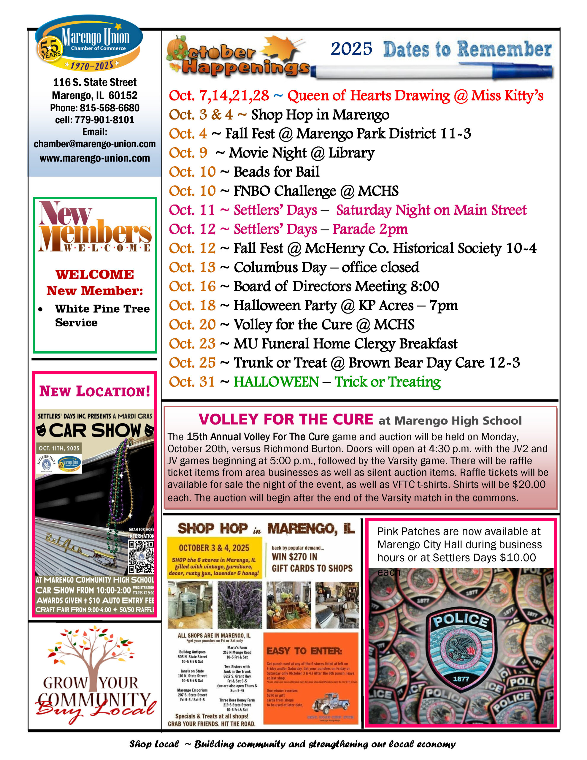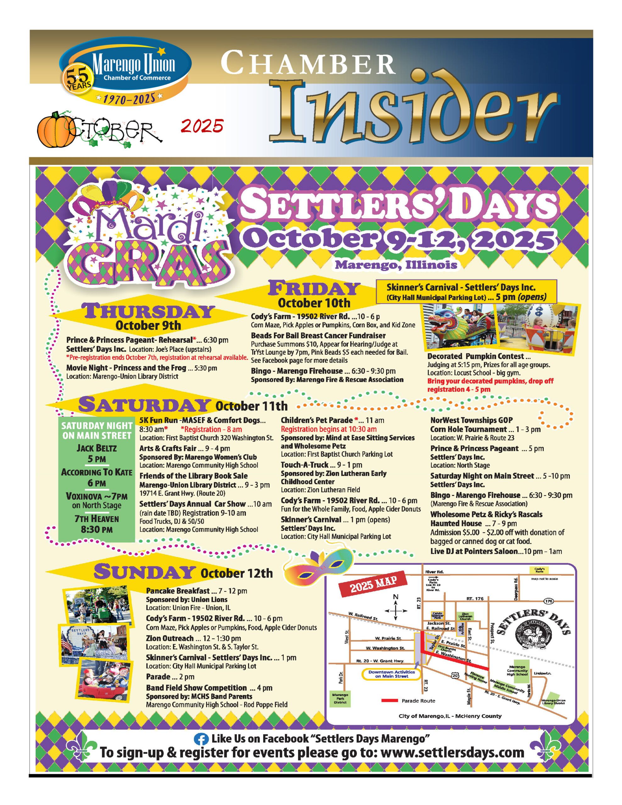 In collaboration with the Marengo-Union Chamber of Commerce, the Mayor and City Council passed Ordinance 25-2-1 amending Chapter 32 of the Marengo Municipal Code regarding business registration. This ordinance states that businesses existing prior to May 1, 2025, will not have any fees associated with registering their business.